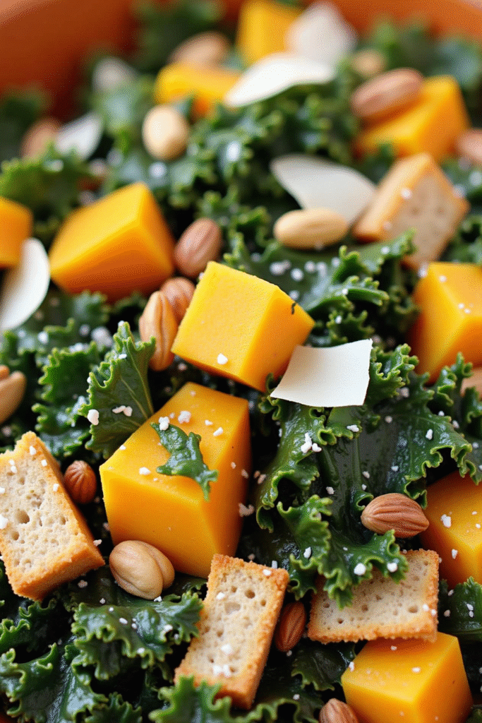 Begin with a sturdy bed of crisp romaine or hearty greens like kale, which hold up well against the creamy dressing. Top with your perfectly roasted delicata squash croutons, freshly shaved Parmesan, and crunchy roasted pepitas. Finish it all with a classic Caesar dressing—store-bought or homemade—for a salad that feels both comforting and elevated.