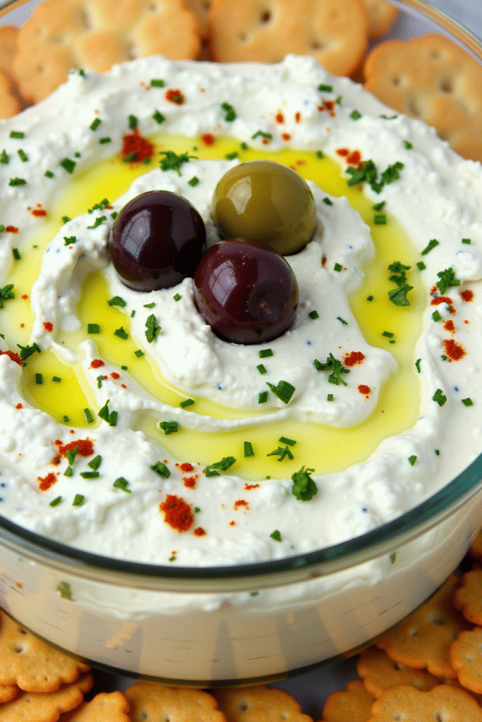 Presentation is simple: transfer the dip to a decorative bowl and sprinkle with a handful of chopped olives, a drizzle of extra-virgin olive oil, and fresh herbs. Pair with an assortment of dippers like toasted baguette slices, pita chips, or crisp vegetables for a show-stopping appetizer everyone will love.